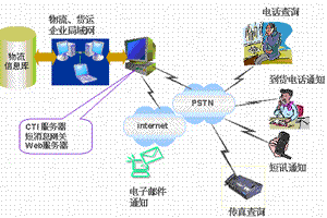 CTI服务器负责接入用户的查询请求,并根据用户的要求进行货物查询等操作;根据企业预先设置的拨号表逐一外拨到目标用户(货主或收货人)完成电话通知的功能。